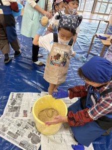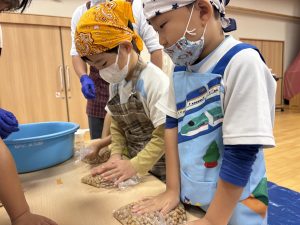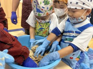 11月13日に年長児ひかり組さんと一緒にみそ作りを行いました!