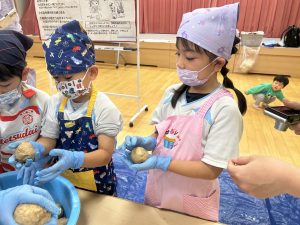 「上手に丸が出来たよ!」とお友だちと見せ合いっこをしながら上手に丸めていました。
