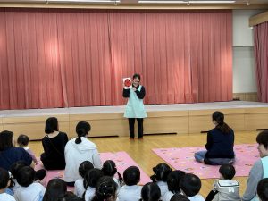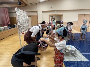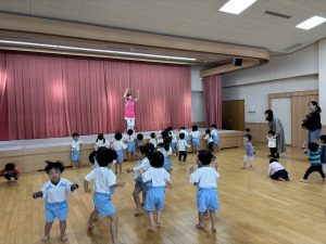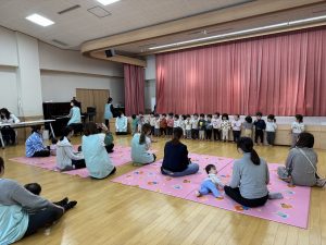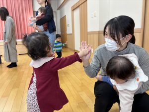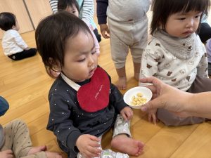 「えい!」と思いっきり投げる子やポトンと優しく落とす子もいて様々でしたが、それぞれ楽しむ様子が見られました。