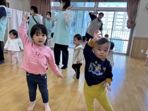0歳児のふたばぐみお友だちも遊びに来て見学をしましたよ!
