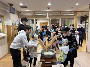そしてついに、子どもたちもおもちをついたり、丸めたり、触ってみたりする時間のスタートです!